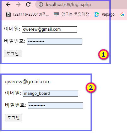 2번처럼 email의 value 가 화면에 출력되는지 확인