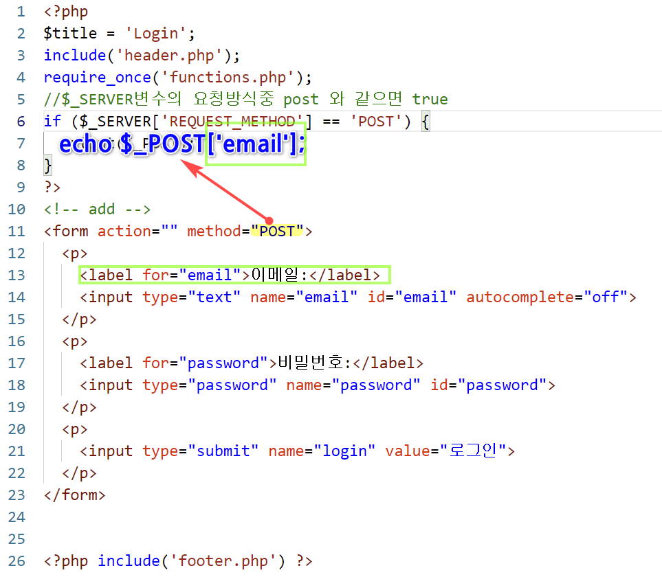 - post 방식으로 전달받은 값중에 변수가 설정되었는지 확인해서 출력한다