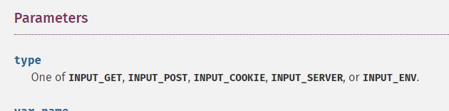 filter_input 함수는 true 나 false를 반환 filter_input 함수는 parameter 를 사용한다. 그중 type은