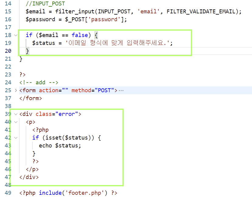 - login.php 하단에 에러를 출력할 요소를 넣는다